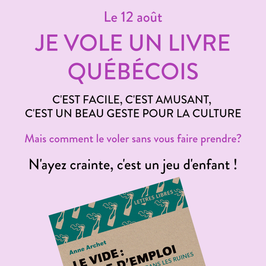 Le 12 août, je vole un livre québécois Partager : Partager sur X(ouvre dans une nouvelle fenêtre) X Partager sur Facebook(ouvre dans une nouvelle fenêtre) Facebook Partager sur Pinterest(ouvre dans une nouvelle fenêtre) Pinterest Envoyer un lien par e-mail à un ami(ouvre dans une nouvelle fenêtre) E-mail J’aime chargement…